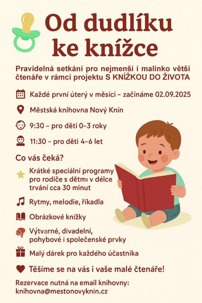 📧 Rezervace nutná! Napište na e-mail: knihovna@mestonovyknin.cz