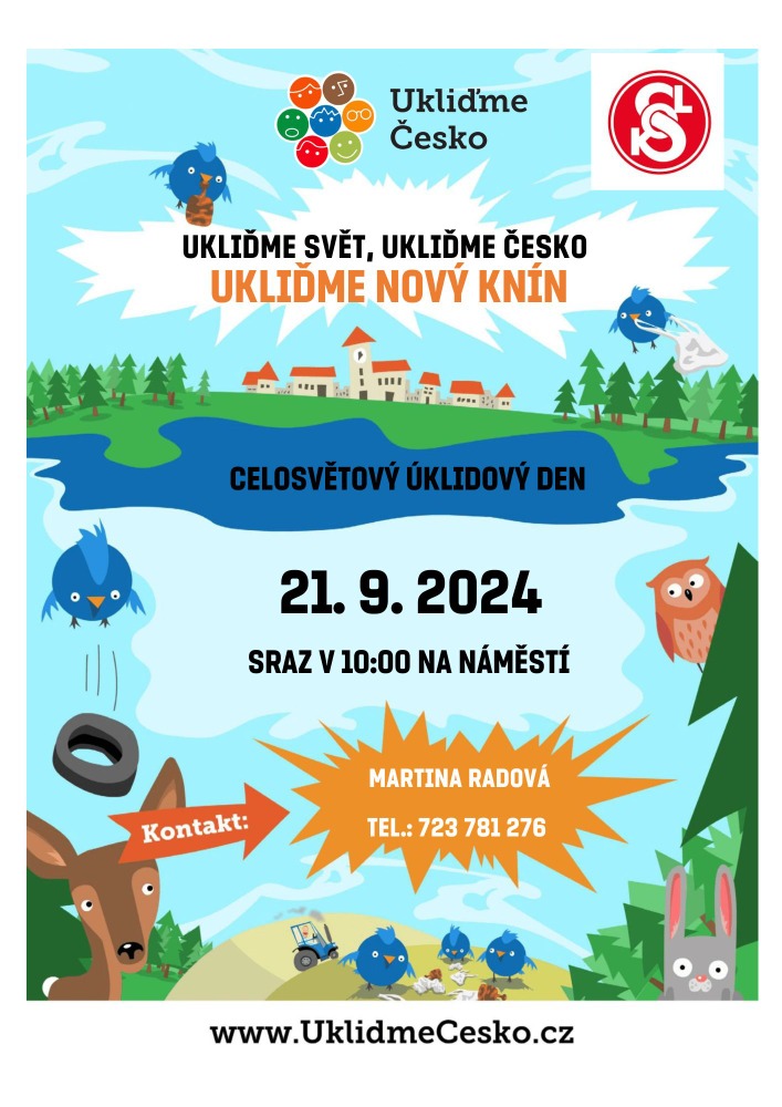 TJ Sokol Nový Knín pořádá akci Ukliďme Nový Knín, která se bude konat v sobotu 21. září. Sraz na náměstí v 10:00 hodin. kontaktní osoba: Martina Radová, tel.: 723 781 276