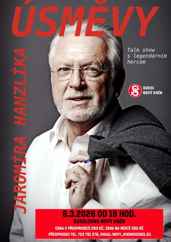Sokol Nový Knín vás zve na talk show s legendárním hercem Jaromírem Hanzlíkem, která se bude konat 6. března od 19:00 v sokolovně.
